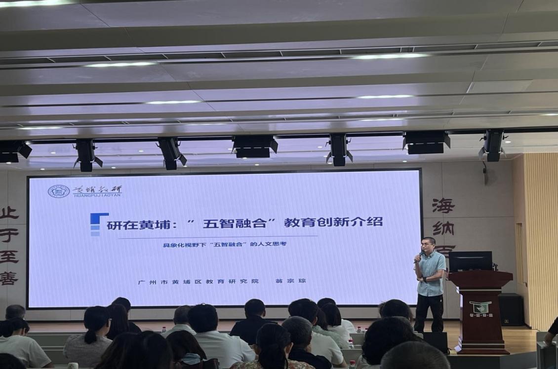 黄埔区教育研究院围绕“五智融合”教学成果推广作专题分享,现场研讨进行案例交流,展示AI赋能课程改革、跨学科项目实践等创新探索。区教育研究院副院长曹小恩强调要推动基础教育从“资源供给”转向“精准适配”,服务学生核心素养发展需求。