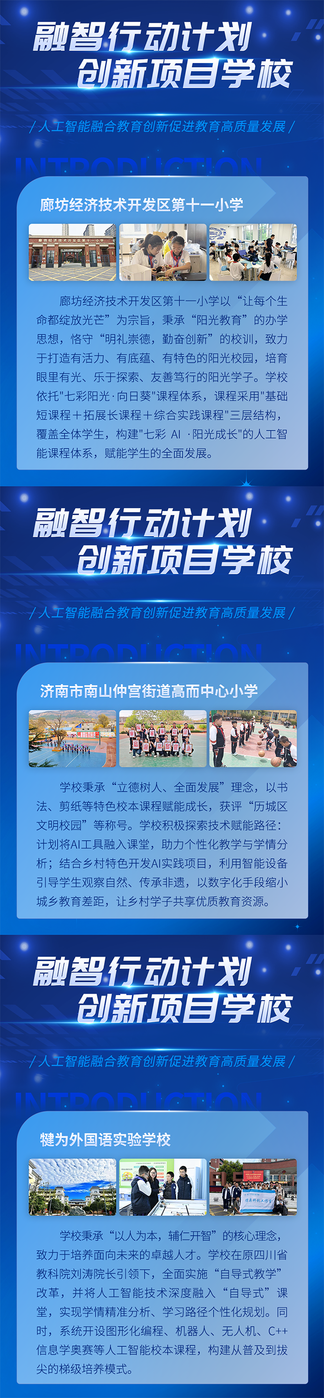 截至目前,全国已有400余所学校加入“融智行动”创新项目校的阵营。创新校的成功实践,不仅展示了人工智能在教育领域的创新应用,更为全国教育工作者提供了宝贵的经验和启示。今天,让我们将目光投向接下来的30所创新项目学校,它们在“融智行动”的引领下,以创新的思维,积极探索人工智能与教育深度融合的新路径。